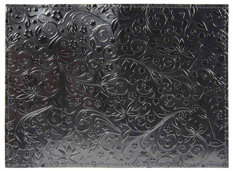 Обложка для паспорта из натуральной кожи, черный, сплошное тиснение по коже "Флаверс"