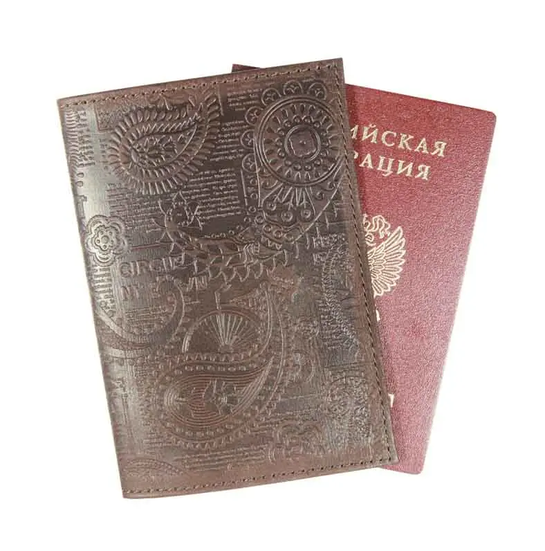 Обложка для паспорта из натуральной кожи, коричневый, сплошное блинтовое тиснение по коже "Индийский орнамент"