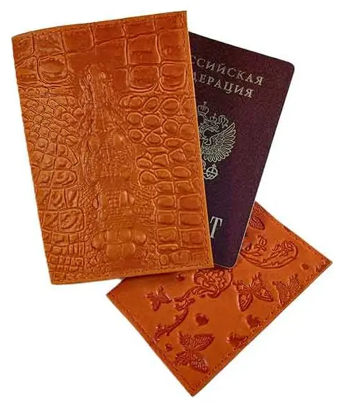 Обложка для паспорта из натуральной кожи, рыжий, сплошное тиснение по коже "Данди"