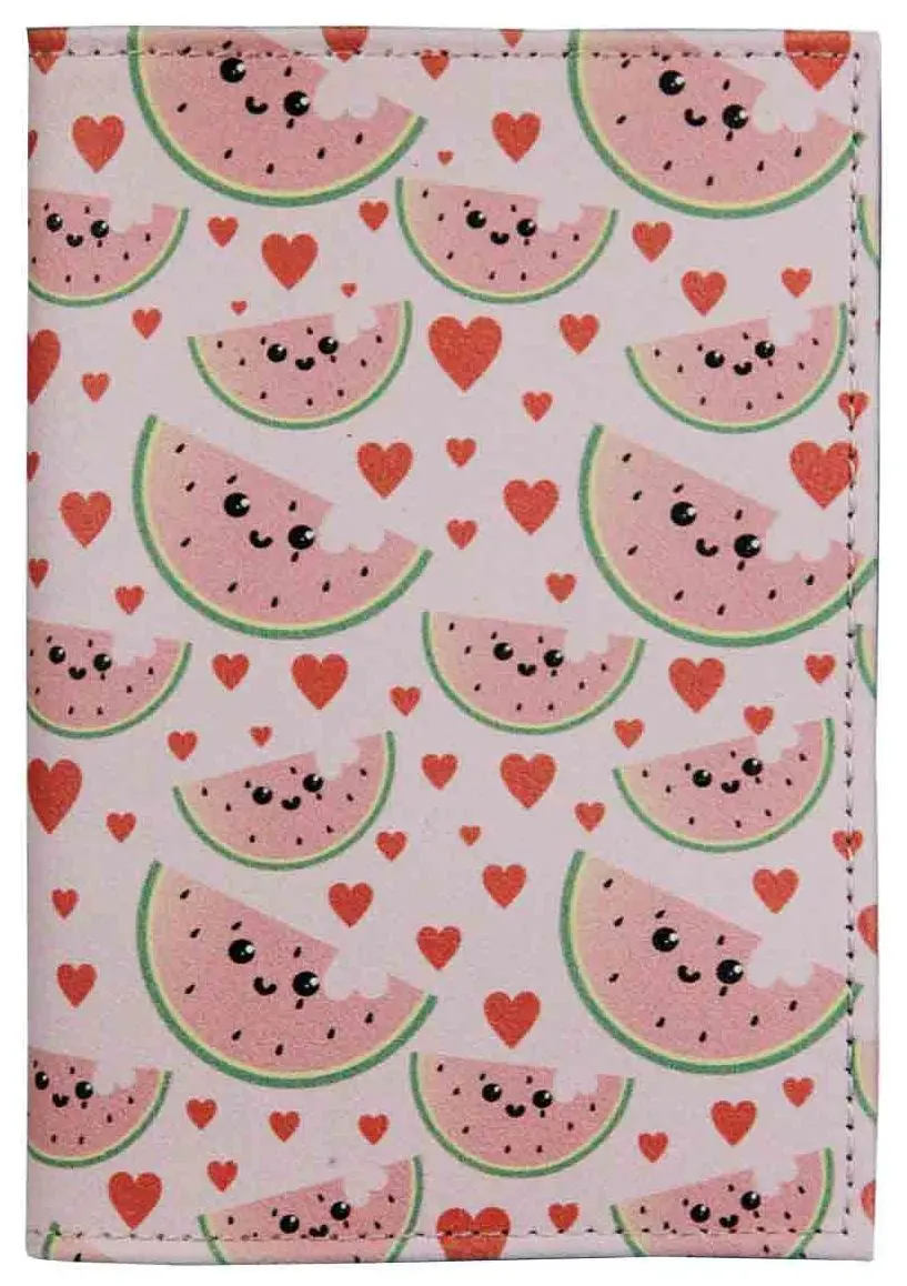 Обложка для паспорта из натуральной кожи, цветной рисунок по коже "Арбузики"