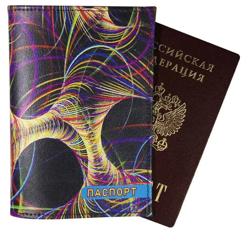 Обложка для паспорта из натуральной кожи, цветной рисунок по коже "Пружинки"