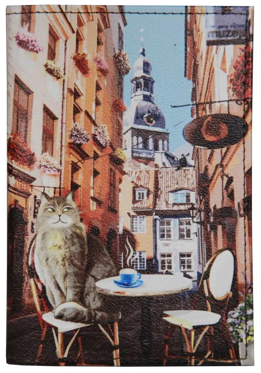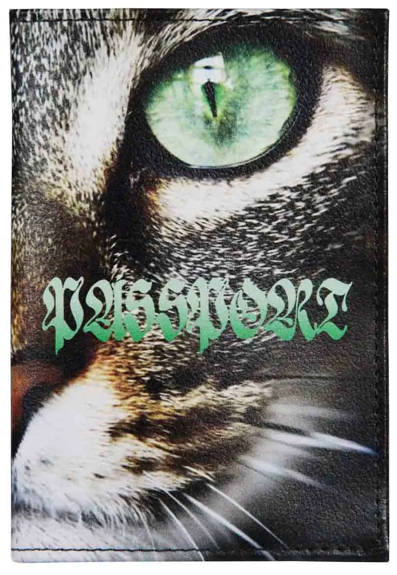 Обложка для паспорта из натуральной кожи, цветной рисунок по коже "Кот"