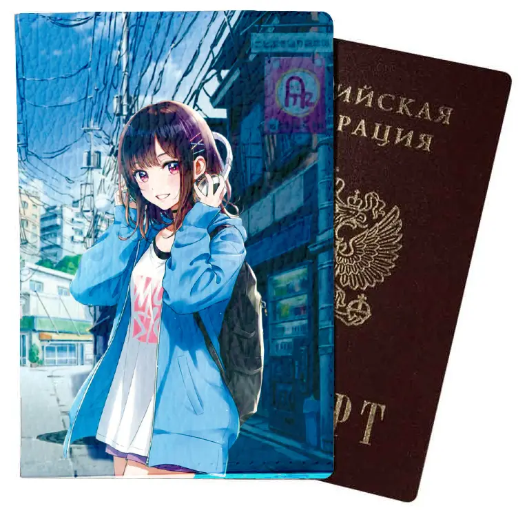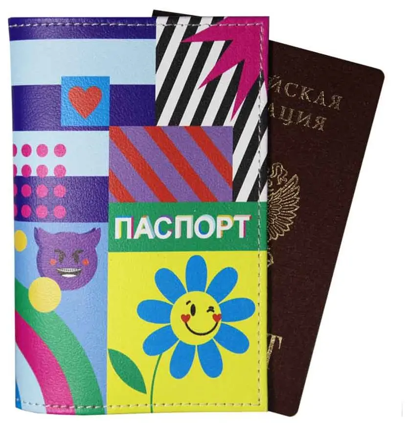 Обложка для паспорта из натуральной кожи, цветной рисунок по коже "Мульти"