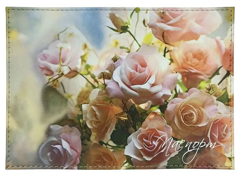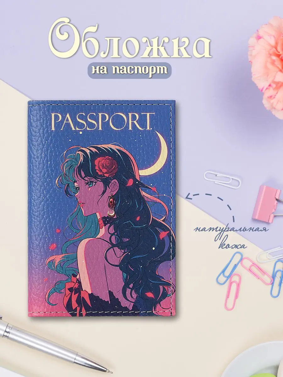 Обложка для паспорта из натуральной кожи, цветной рисунок по коже "Сейлор-роз"