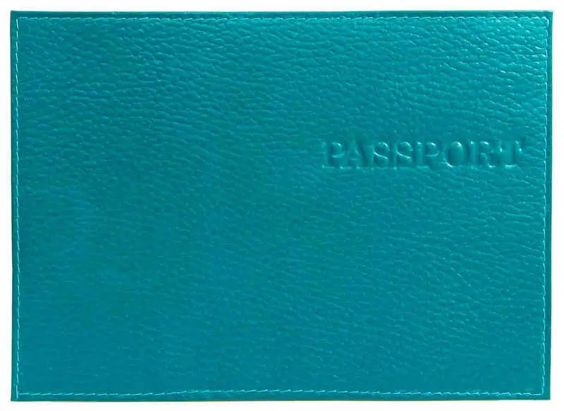 Обложка для паспорта из натуральной кожи Флотер, цвет морской волны, тисн.конгрев "PASSPORT"