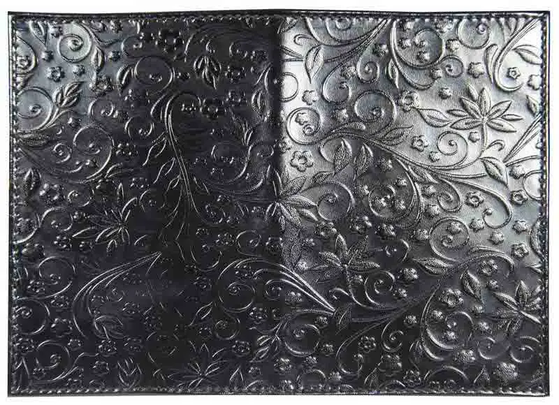 Обложка для паспорта из лакированной натуральной кожи, черный, сплошное тиснение по коже "Флаверс"