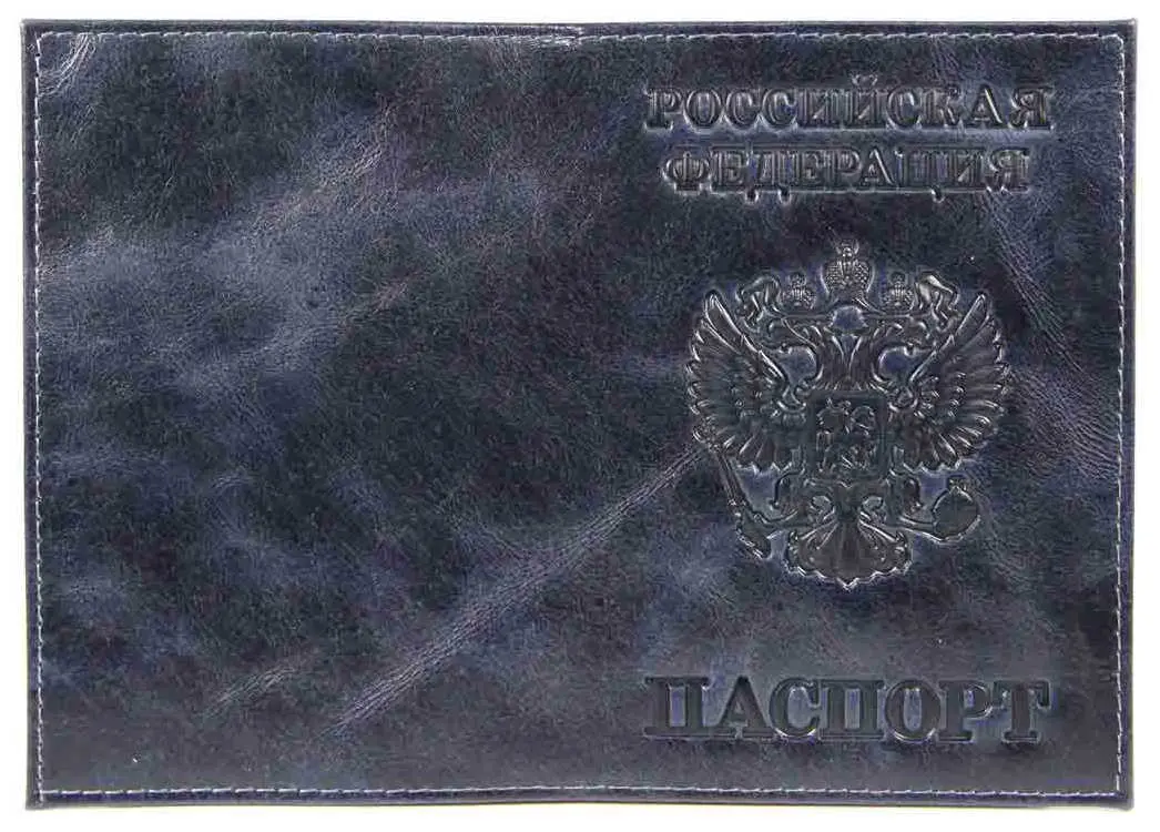 Обложка для паспорта из натуральной кожи Парус, темно-синий, тисн.конгрев "РОССИЯ-ПАСПОРТ-ГЕРБ"