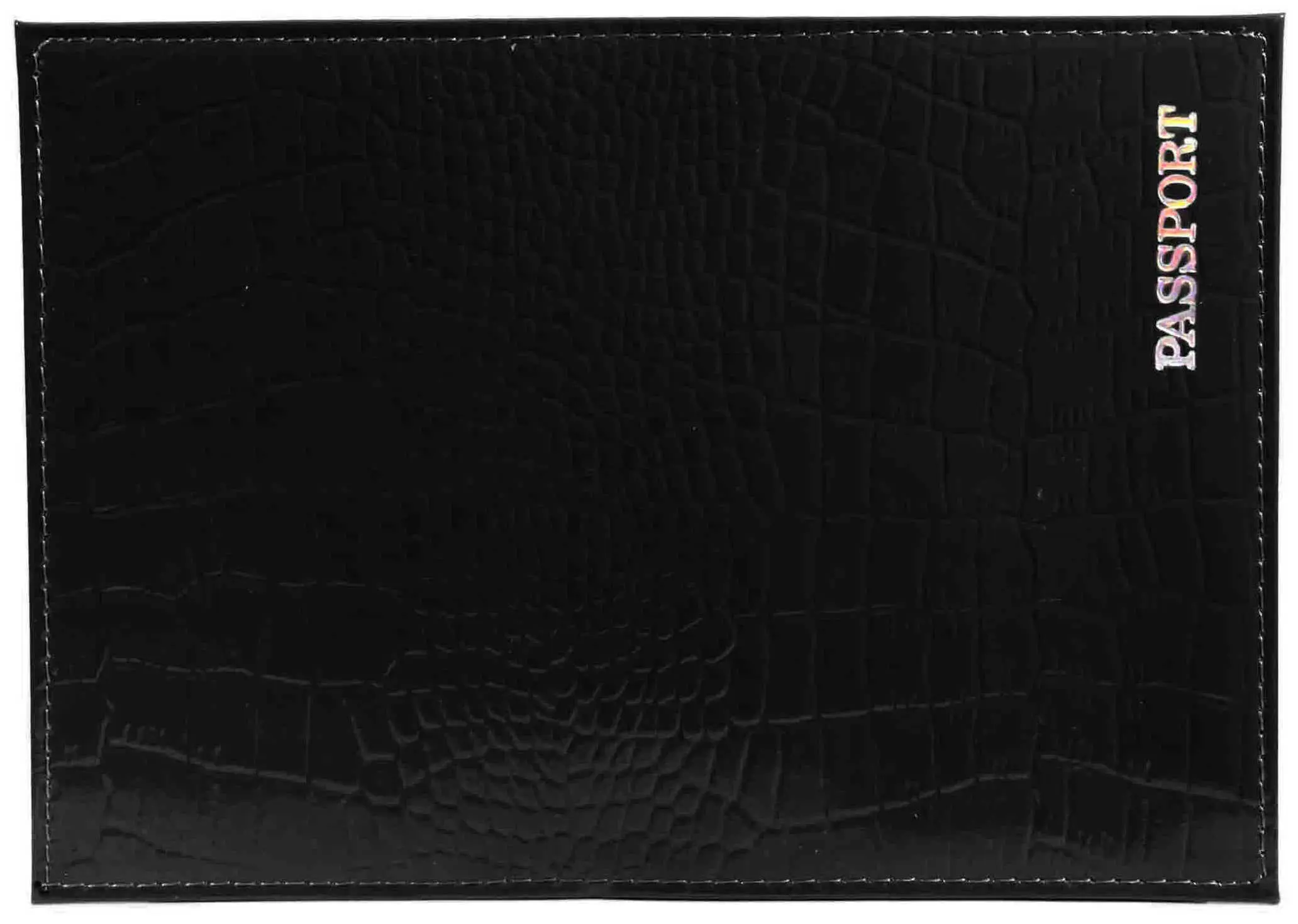 Обложка для паспорта из натуральной кожи Крокодил, черный, тисн.серебро "PASSPORT"