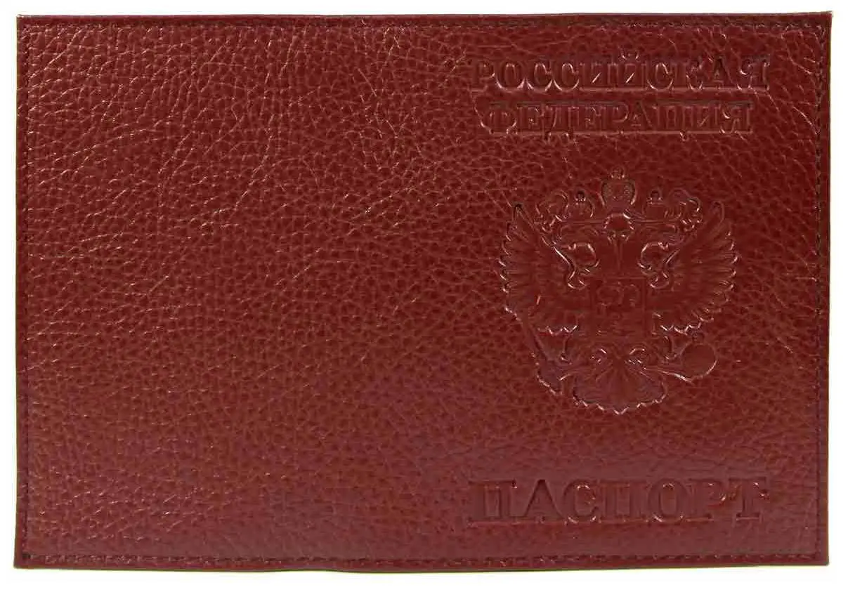 Обложка для паспорта из натуральной кожи Флотер, вишневый, тисн.конгрев "РОССИЯ-ПАСПОРТ-ГЕРБ"