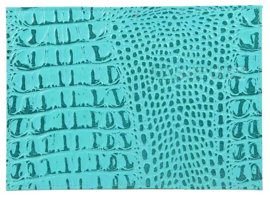 Обложка для паспорта из натуральной кожи Крокодил, бирюзовый, тисн.серебро "PASSPORT"