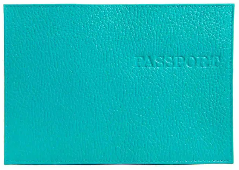 Обложка для паспорта из натуральной кожи Флотер, бирюзовый, тисн.конгрев "PASSPORT"