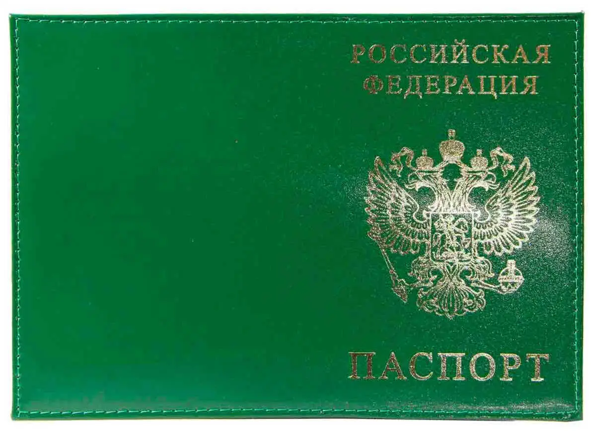 Обложка для паспорта из натуральной кожи Шик, зеленый, тисн.золото "РОССИЯ-ПАСПОРТ-ГЕРБ"
