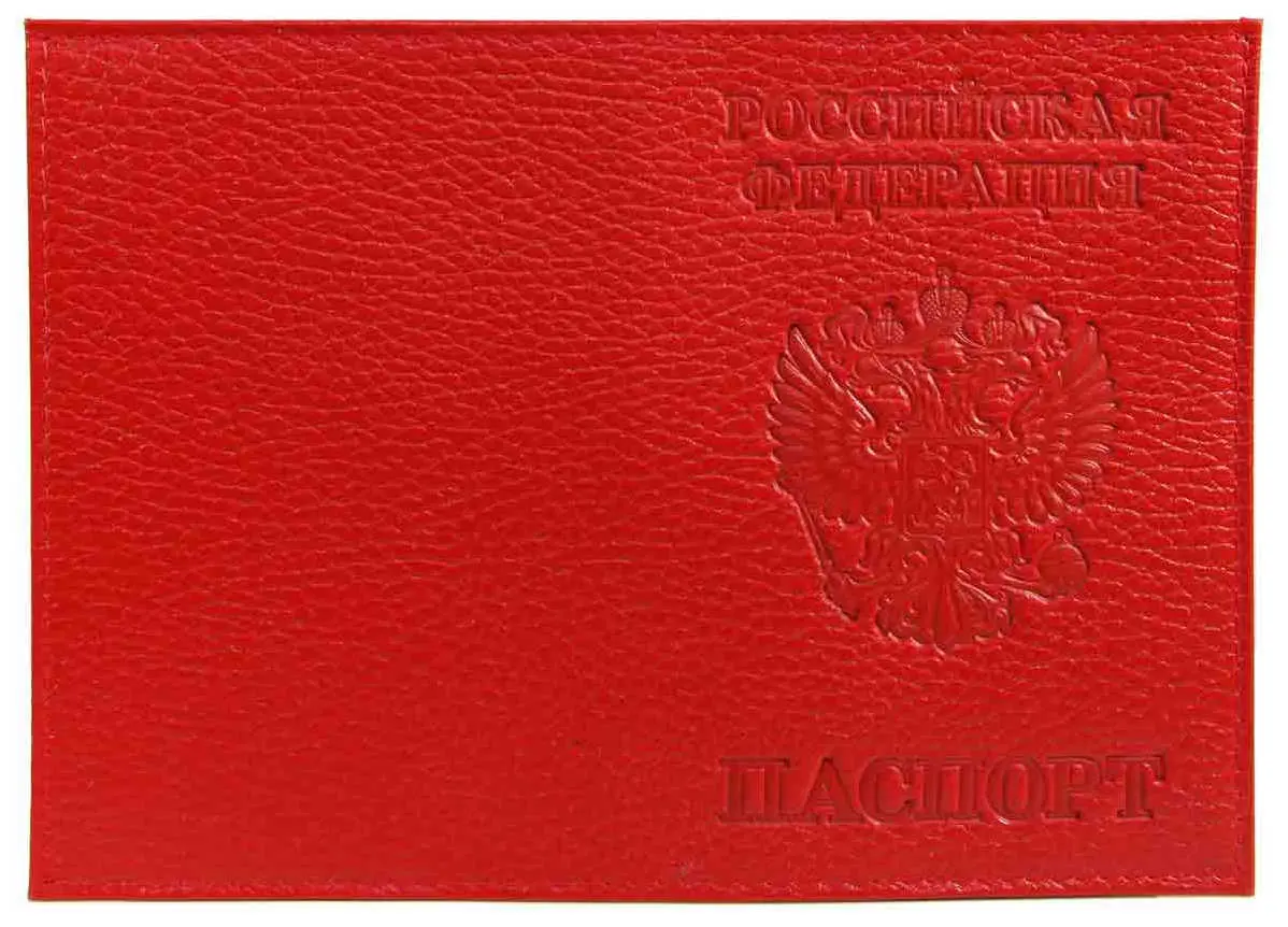 Обложка для паспорта из натуральной кожи Флотер, красный, тисн.конгрев "РОССИЯ-ПАСПОРТ-ГЕРБ"