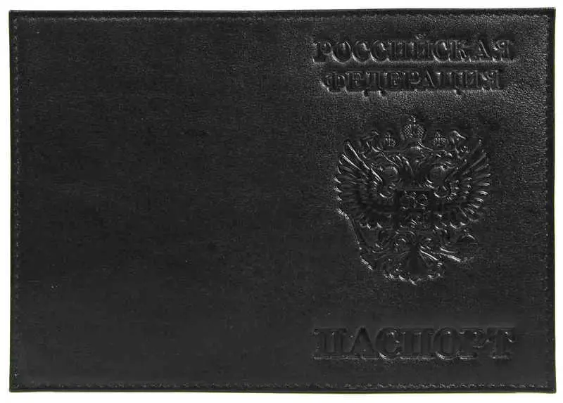 Обложка для паспорта из натуральной кожи Флотер, черный, тисн.конгрев "РОССИЯ-ПАСПОРТ-ГЕРБ"
