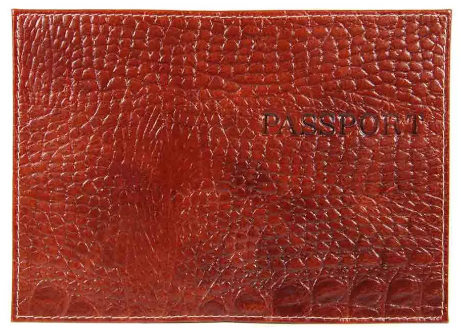 Обложка для паспорта из натуральной кожи Кроко, коричневый, тисн.конгрев "PASSPORT"