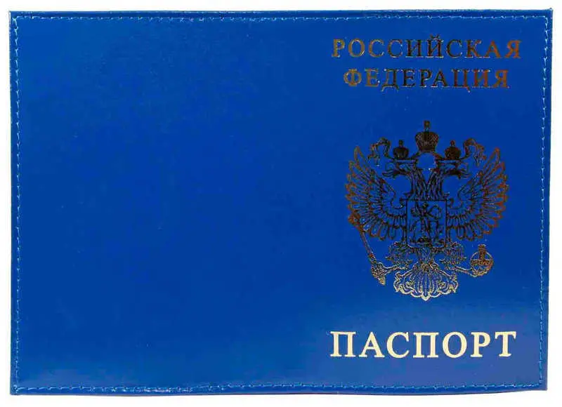 Обложка для паспорта из натуральной кожи Шик, синий, тисн.золото "РОССИЯ-ПАСПОРТ-ГЕРБ"