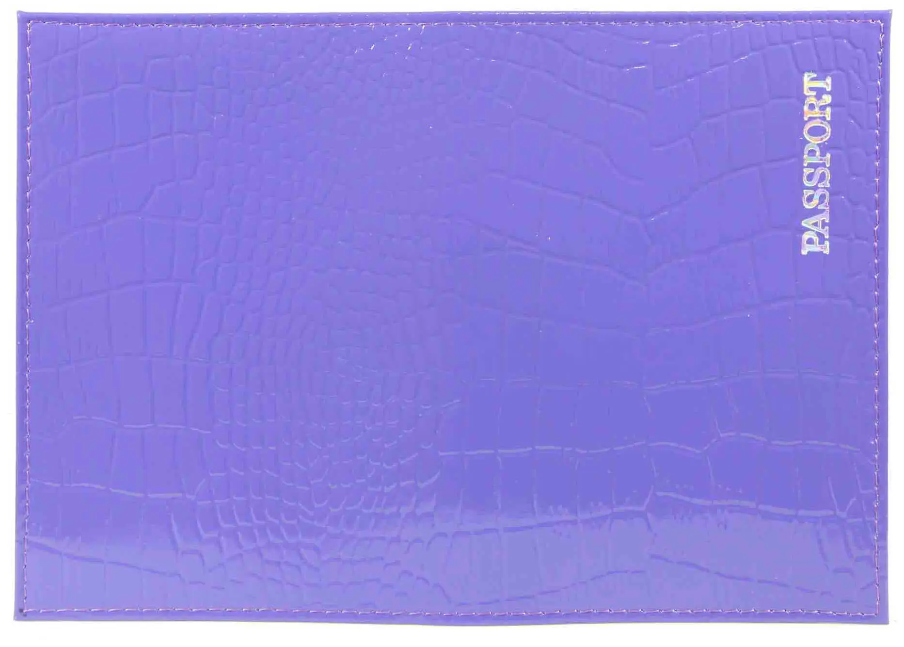 Обложка для паспорта из натуральной кожи Крокодил, фиолетовый, тисн.серебро "PASSPORT"