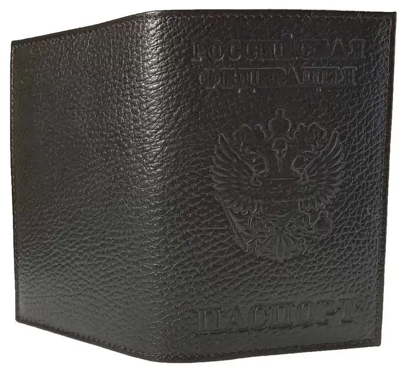 Обложка для паспорта из натуральной кожи Флотер, коричневый, тисн.конгрев "РОССИЯ-ПАСПОРТ-ГЕРБ"