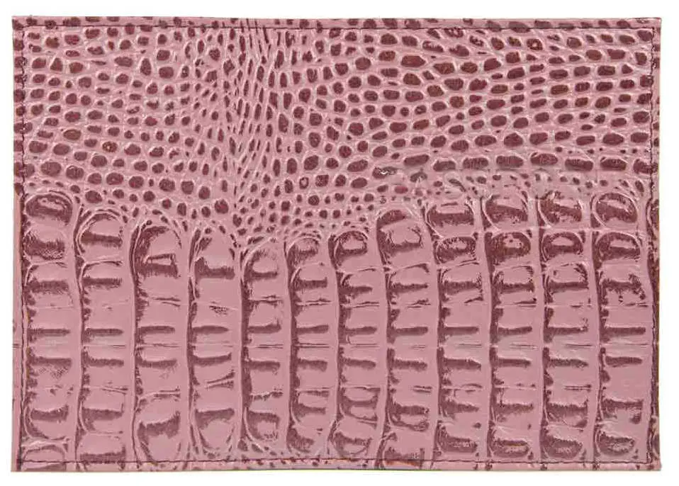 Обложка для паспорта из натуральной кожи Крокодил, розовый, тисн.серебро "PASSPORT"
