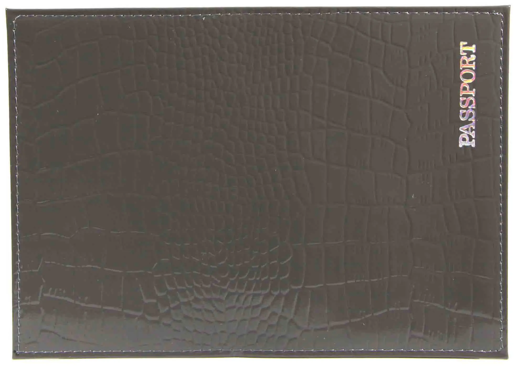 Обложка для паспорта из натуральной кожи Крокодил, серый, тисн.серебро "PASSPORT"