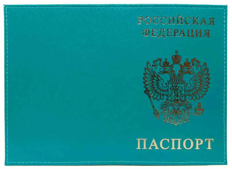 Обложка для паспорта из натуральной кожи Шик, бирюзовый, тисн.золото "РОССИЯ-ПАСПОРТ-ГЕРБ"