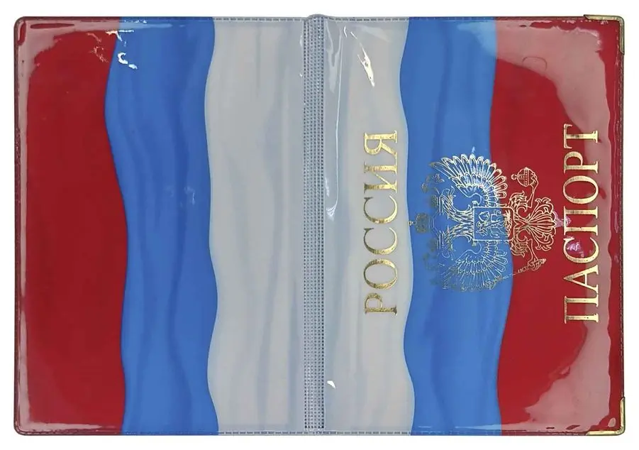 Обложка для паспорта, "Глянец", тисн.золото "РОССИЯ-ПАСПОРТ-Герб Триколор", 2 уголка