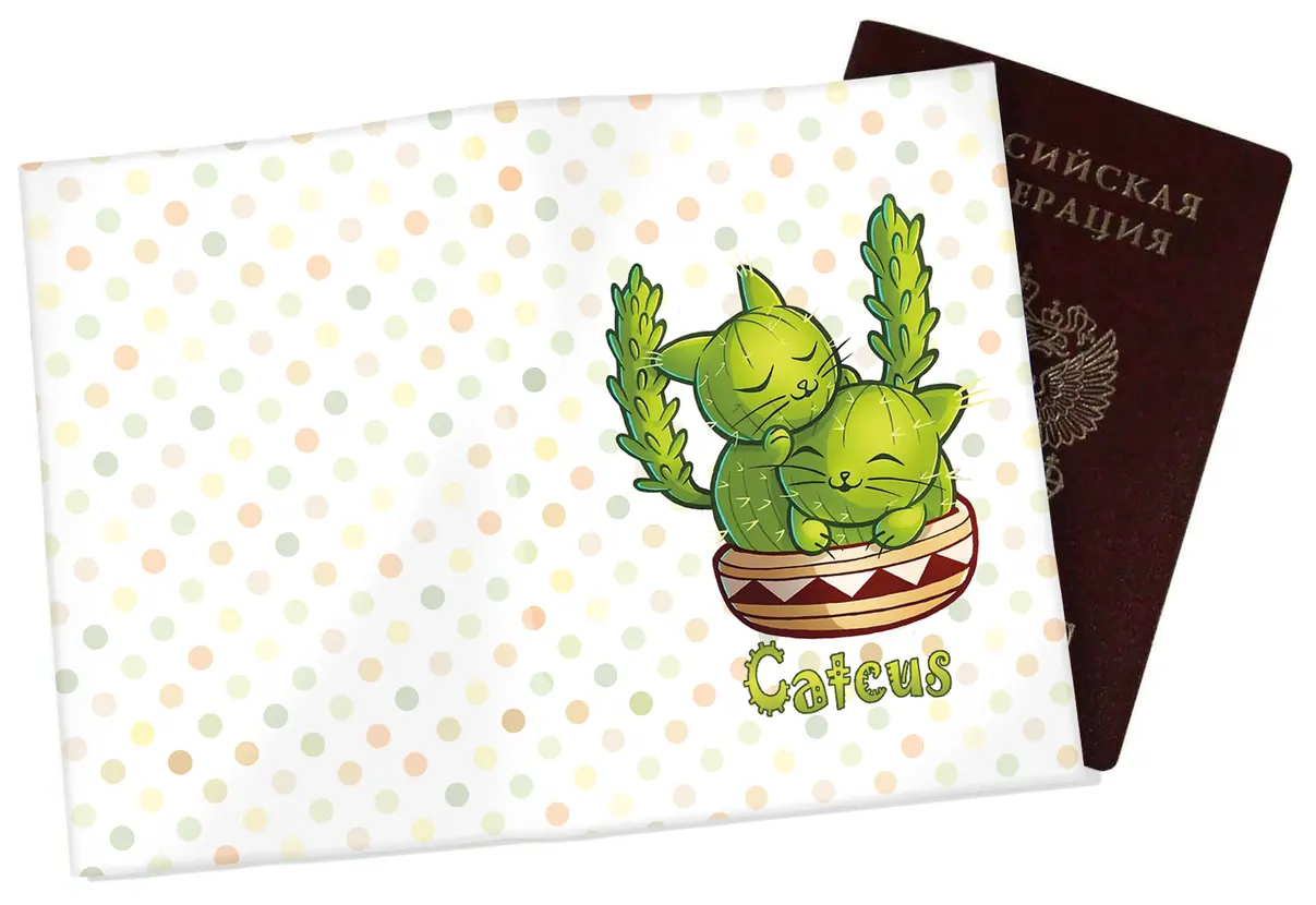 Обложка для паспорта, ПВХ глянцевый с печатью, принт "Котики-кактус"