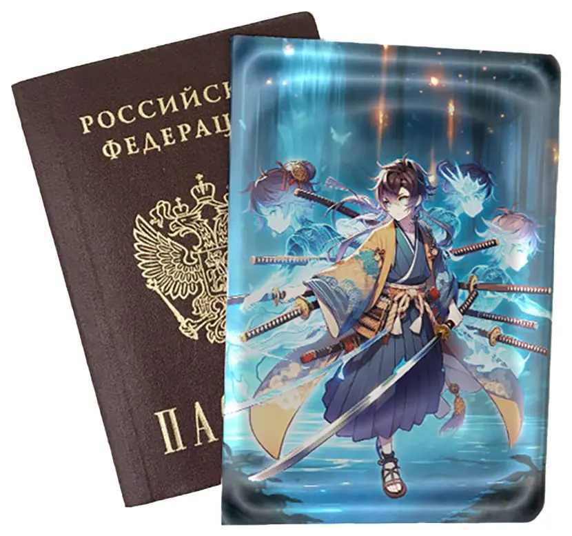 Обложка для паспорта, ПВХ глянцевый с печатью, принт "Самурай"