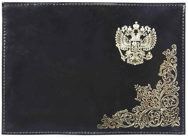 Обложка для паспорта из натуральной кожи, черный, тиснение золотом "Народная"