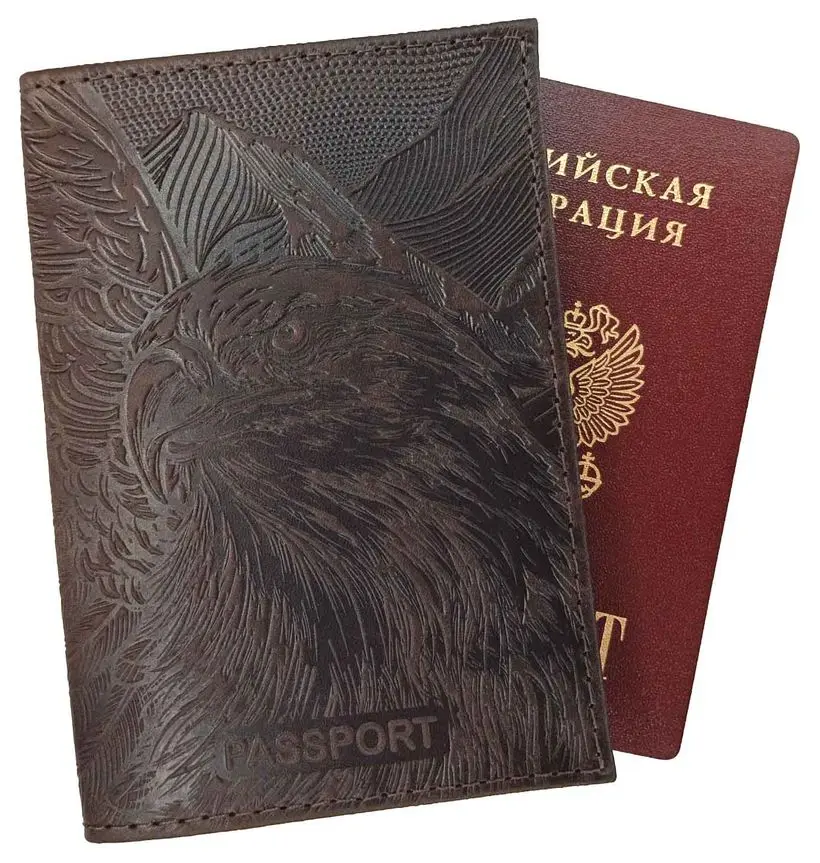 Обложка для паспорта из натуральной кожи, коричневый, сплошное тиснение по коже "Орел"
