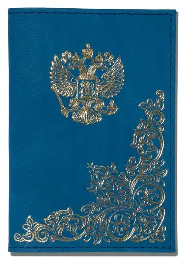 Обложка для паспорта из натуральной кожи, голубой, тиснение золотом "Народная"