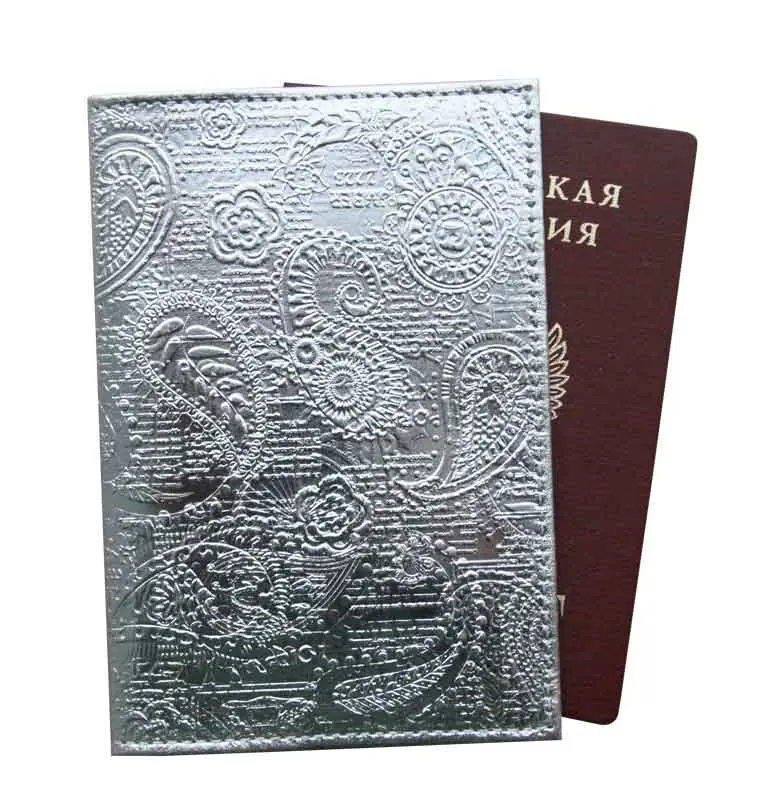 Обложка для паспорта из натуральной кожи, серебряный, сплошное тиснение фольгой "металлик" по коже "Индийский орнамент"