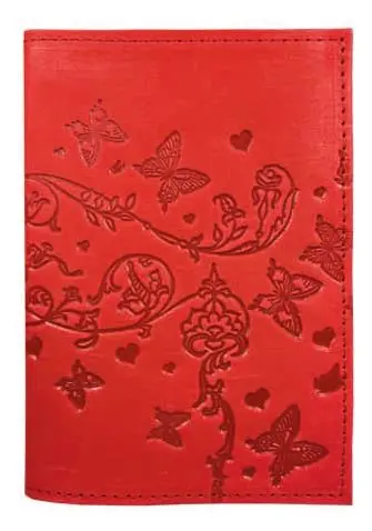 Обложка для паспорта из натуральной кожи, цветной рисунок по коже "Сердце красное на белом"