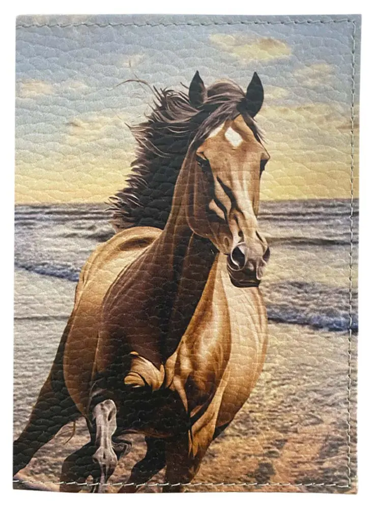Обложка для паспорта из натуральной кожи, цветной рисунок по коже "Лошадь и море"