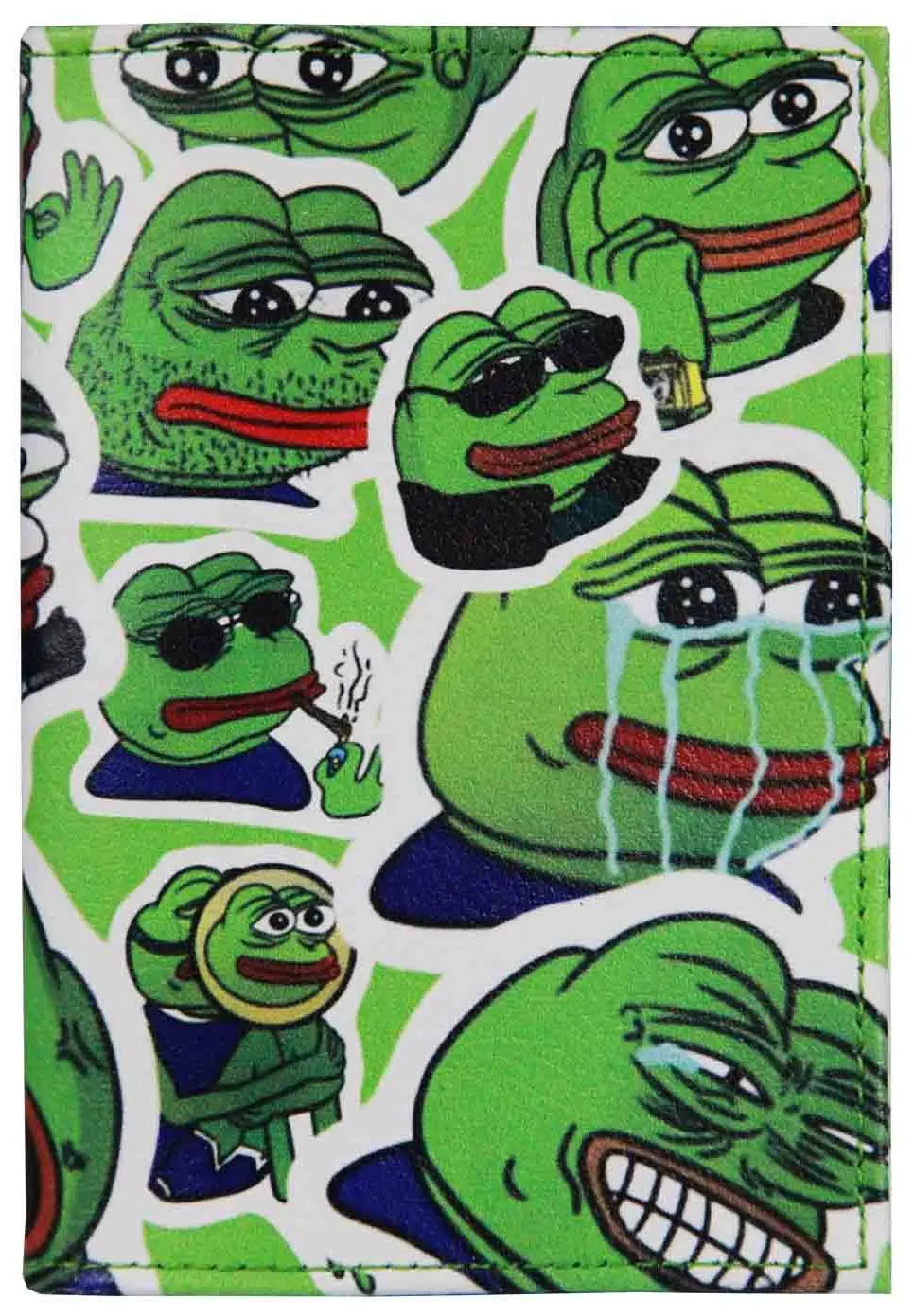 Обложка для паспорта из натуральной кожи, цветной рисунок по коже "Лягушка-мем"