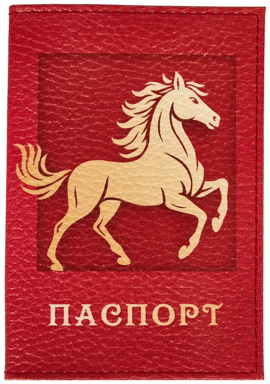 Обложка для паспорта из натуральной кожи, цветной рисунок по коже "Золотая лошадь"
