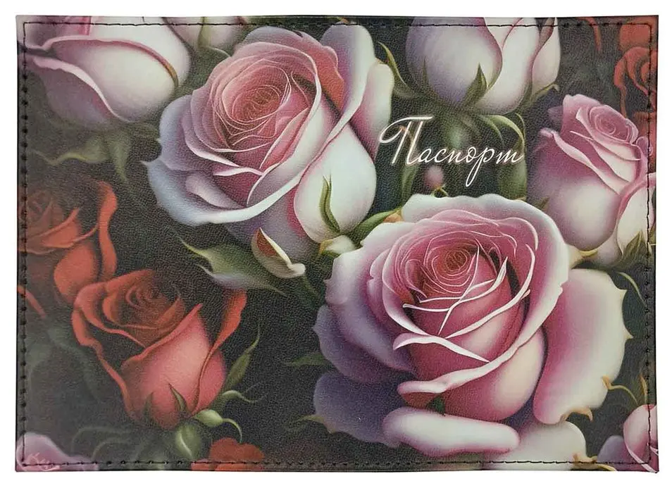 Обложка для паспорта из натуральной кожи, цветной рисунок по коже "Пленительные розы"