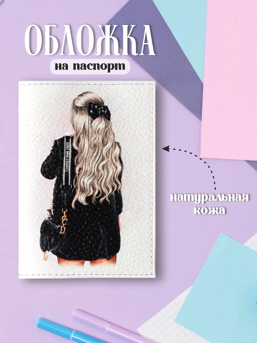 Обложка для паспорта из натуральной кожи, цветной рисунок по коже "Блонди"