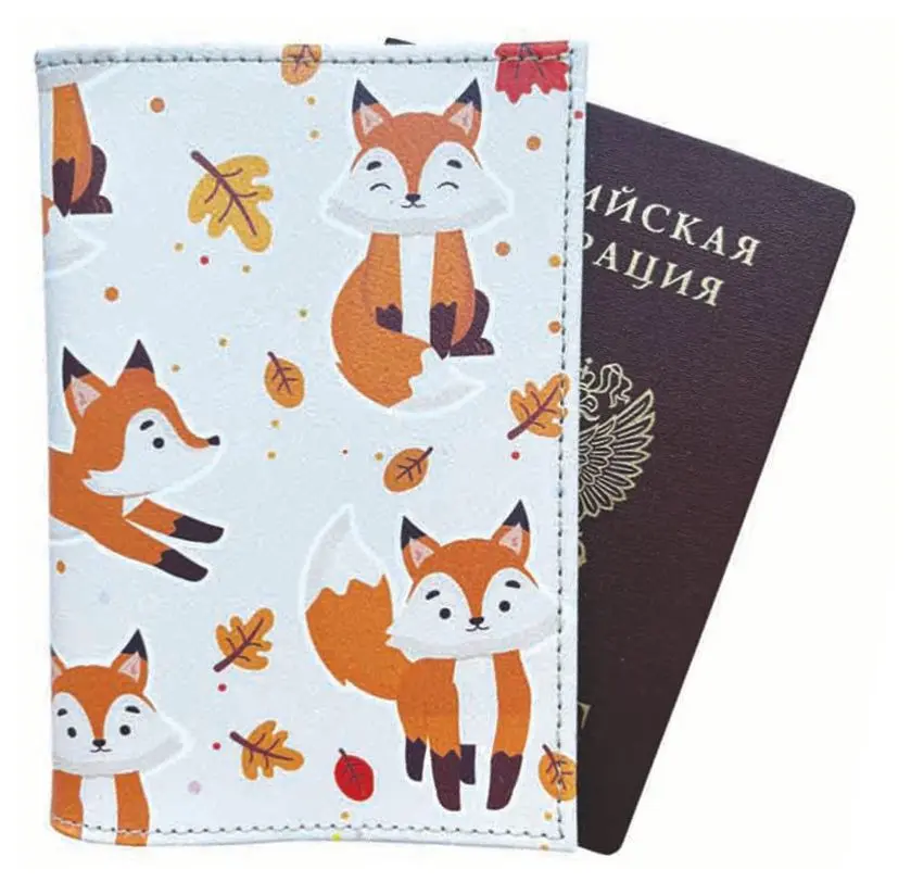 Обложка для паспорта из натуральной кожи, цветной рисунок по коже "Лисички"