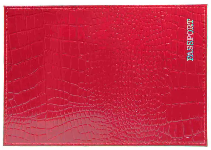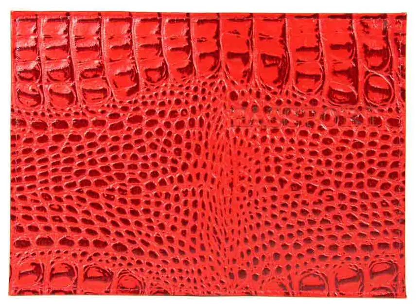 Обложка для паспорта из натуральной кожи Крокодил, красный, тисн.серебро "PASSPORT"