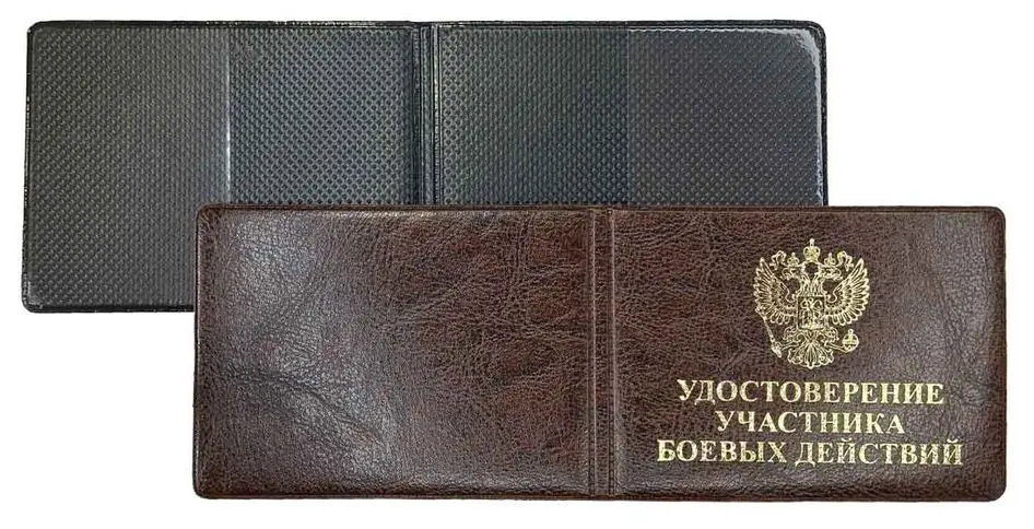 Обложка для удостоверения, "Элит", коричневый, тиснение золото "УДОСТОВЕРЕНИЕ УЧАСТНИКА БОЕВЫХ ДЕЙСТВИЙ", без уголков