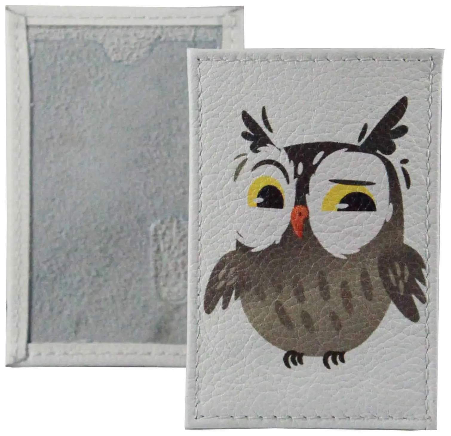 Обложка для проездного билета из натуральной кожи, цветной рисунок по коже "Совунья"