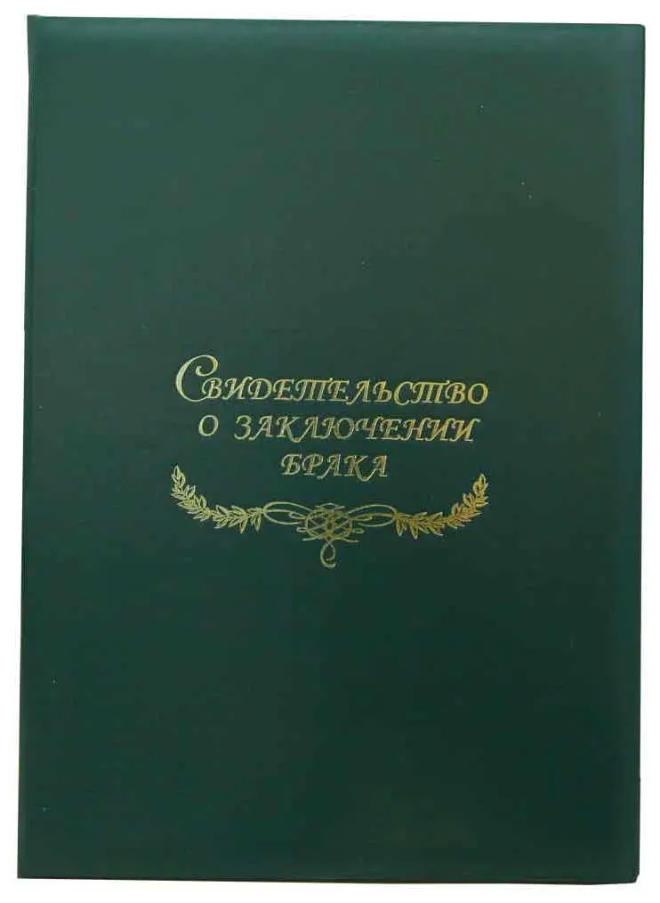 Папка с файлом бумвинил А4 (жесткая) "Свидетельство о заключении брака с виньеткой" зеленая с разводами