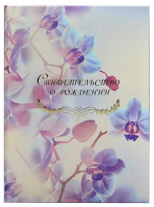 Папка с файлом ламинированная А4 (пухлая) "Свидетельство о рождении с виньеткой" Орхидея