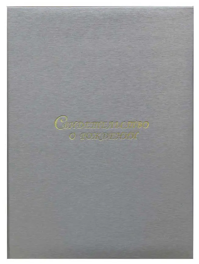 Папка с файлом дизайнерские переп.материалы А4 (пухлая) "Свидетельство о рождении" шелк серебряный