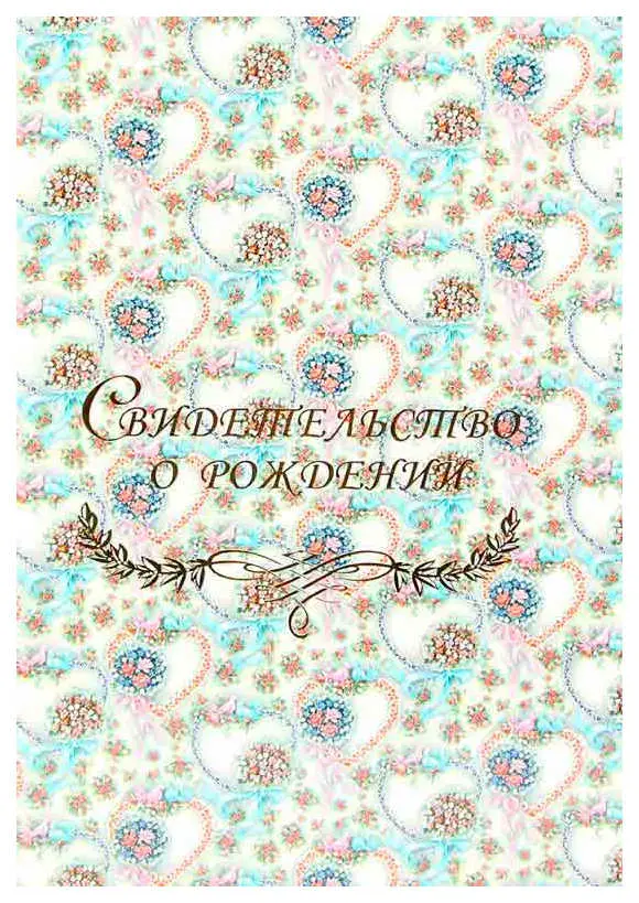 Папка с файлом ламинированная А5 (жесткая) "Свидетельство о рождении с виньеткой" Цветы в коробочках