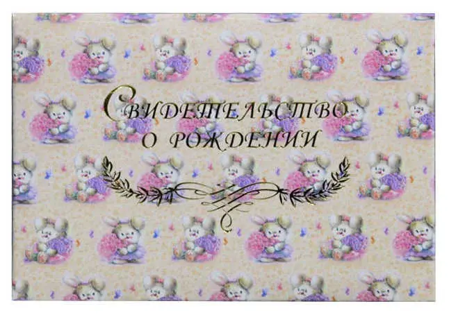 Папка с файлом ламинированная А5 (пухлая) "Свидетельство о рождении с виньеткой" Зайка с букетом