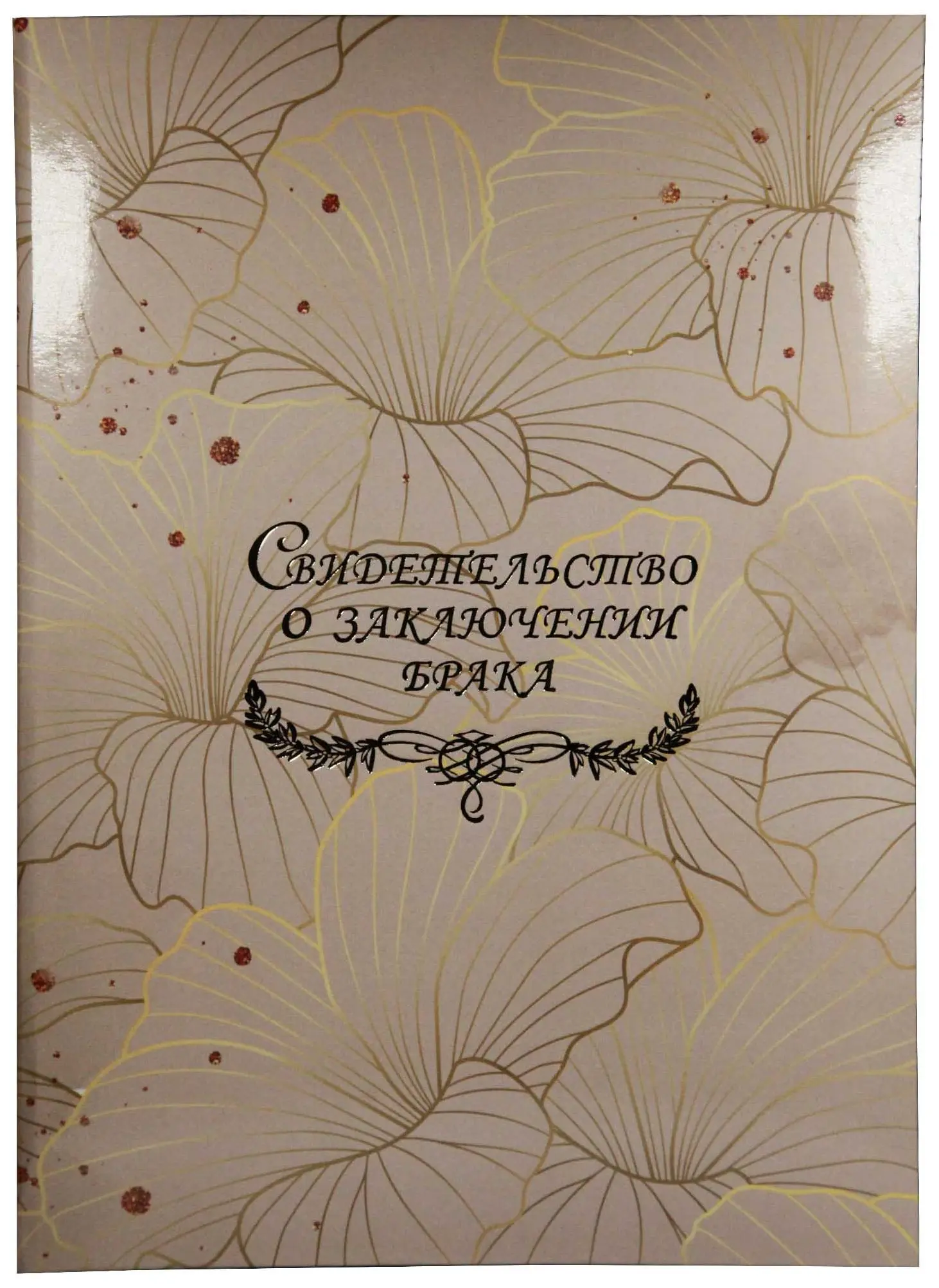 Папка с файлом дизайнерские переп.материалы А4 (пухлая) "Свидетельство о заключении брака с виньеткой" пыль золотая