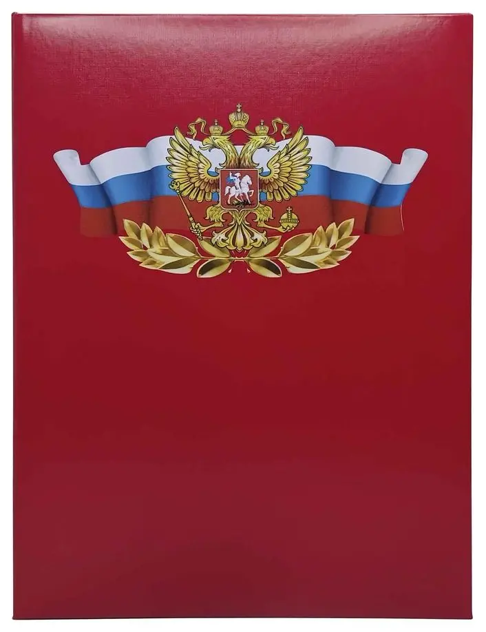 Папка адресная дизайнерские материалы А4 (пухлая) с российским орлом ромб красный