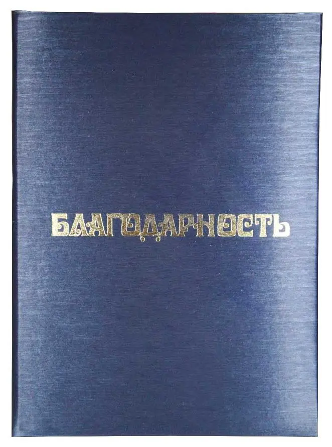 Папка адресная дизайнерские материалы А4 (пухлая) "Благодарность" шелк синий